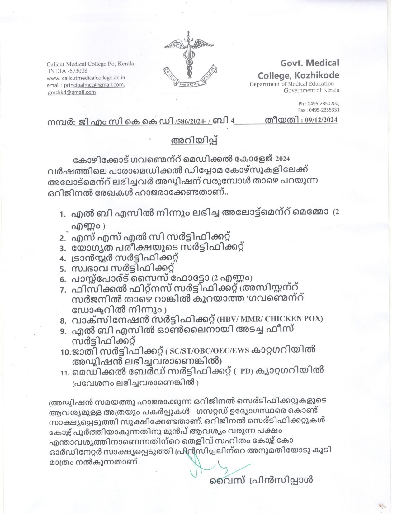 GMC KKD - Website updations - Paramedical Diploma course 2024 - allotment - instructions