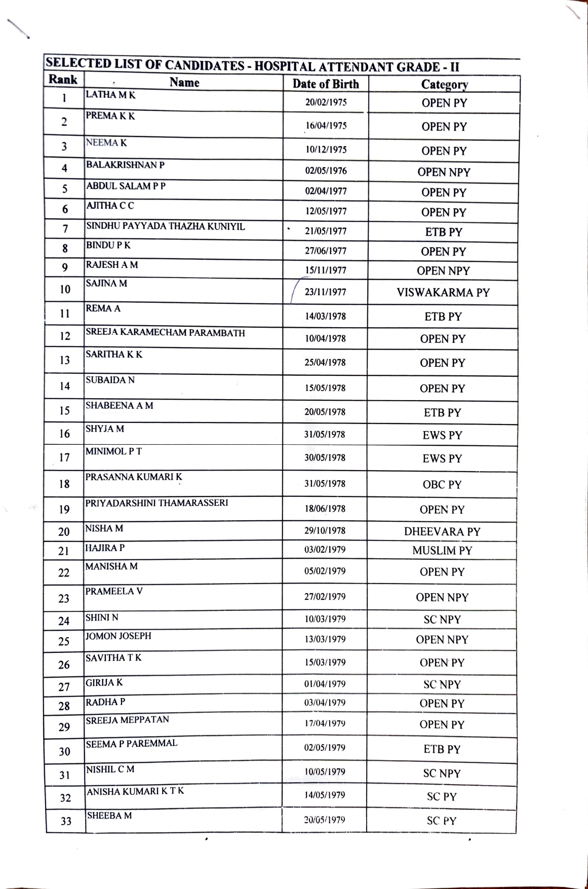 Hospital attendant Gr.2 Selected list of candidates